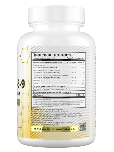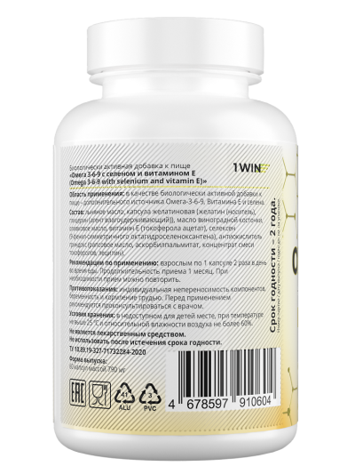 1WIN Oмега 3-6-9 + Селен и Витамин Е / Omega 3-6-9 + selenium and vitamin E капсулы массой 790 мг 60 шт