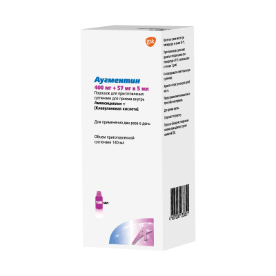 Аугментин порошок д/приг суспензии для приема внутрь 400 мг+57 мг/5 мл 25,2 г фл 1 шт