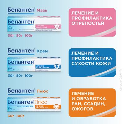 Бепантен Плюс — регенеруючий препарат, що сприяє швидкому загоєнню пошкодженої шкіри та запобігає розвитку інфекційних ускладнень.