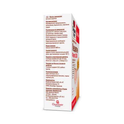 - Дозування: дорослим по 1 капсулі один раз на добу під час їжі, запиваючи водою.
