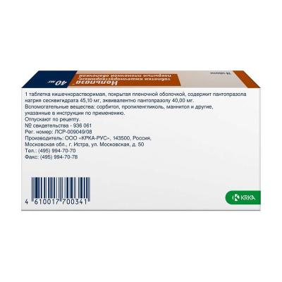- Діюча речовина: пантопразолу натрію сесквигідрат 22,55 мг/45,10 мг, що еквівалентно пантопразолу 20,00 мг/40,00 мг