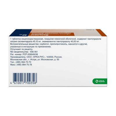 | Діюча речовина | Пантопразолу натрію сесквігідрат — 22,55 мг (еквівалентно пантопразолу 20 мг) |