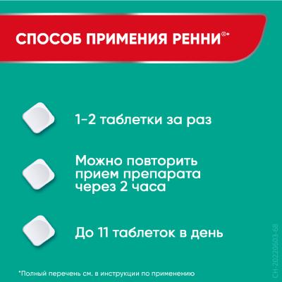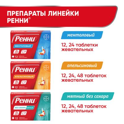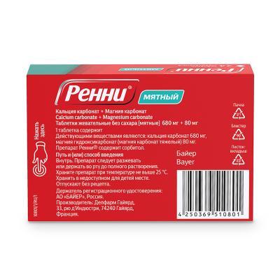Ренни таблетки жевательные 680 мг+80 мг мятные без сахара 24 шт
